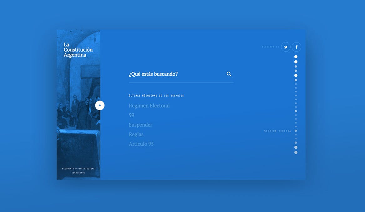 Así, Agustín, licenciado en Comunicación Digital, especializado en marketing y buen amigo de nuestro estudio, nos contó su idea de crear La Constitución, una sencilla plataforma online abierta, apta para todos los dispositivos, para buscar el texto íntegro de la Constitución.